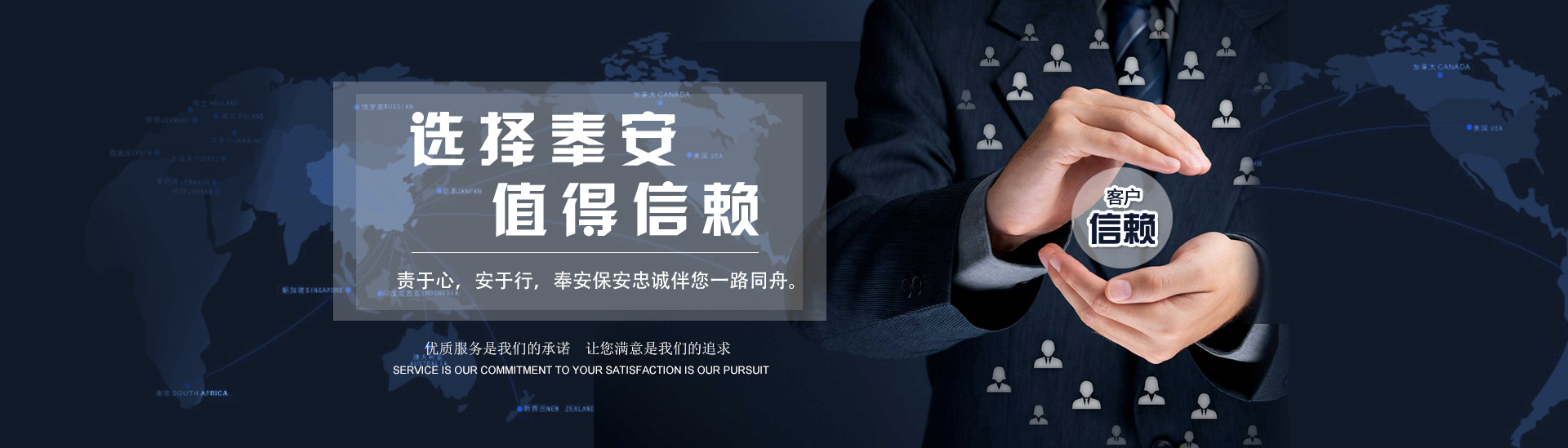 以客為尊 :客戶是公司生存和發(fā)展的決定因素,沈陽奉安保安服務(wù)有限公司堅持以客戶為上帝的經(jīng)營理念,全力貫徹“以客為尊、以誠待客”的服務(wù)宗旨查看更多 >> -
